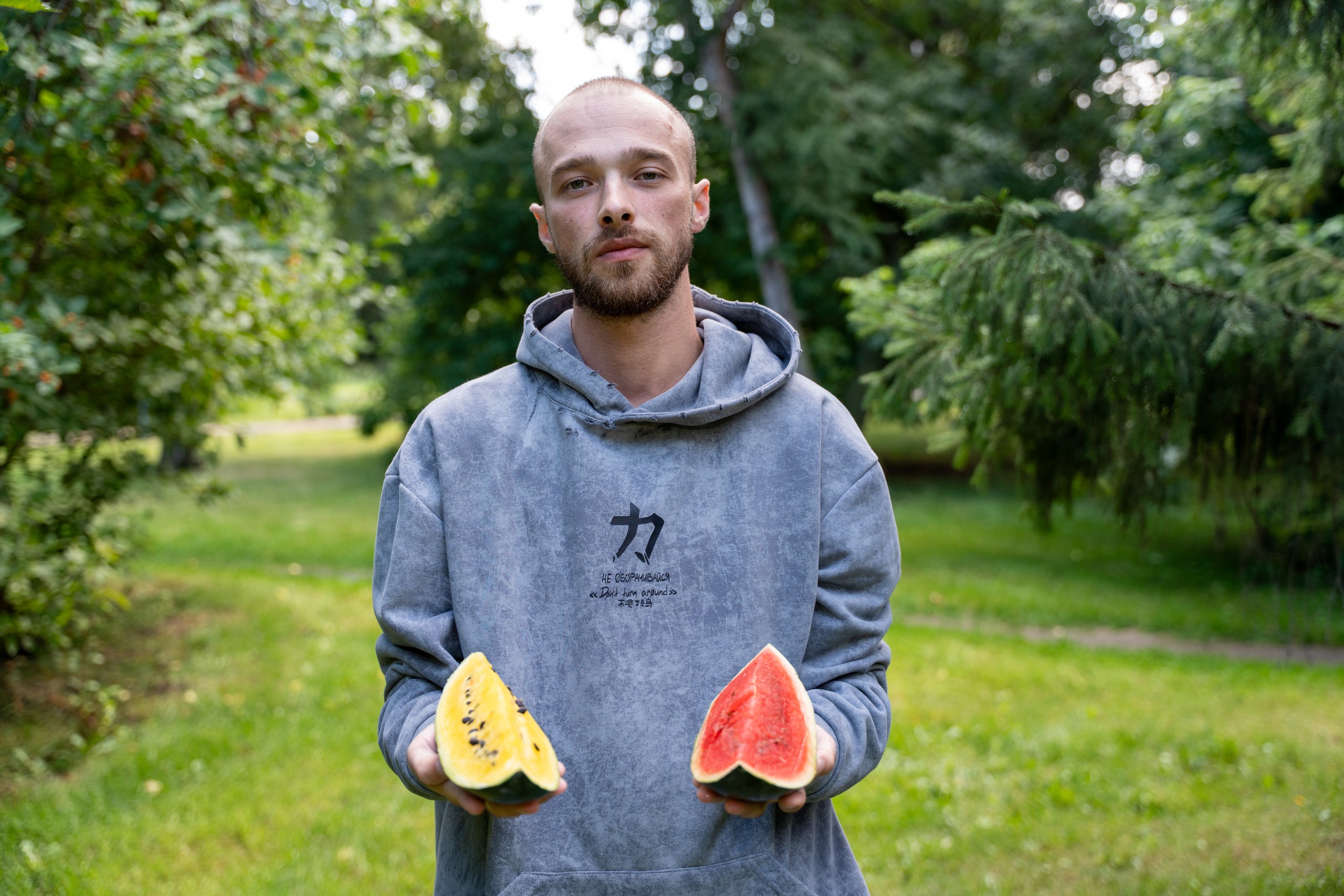 Жене досталось «Яйцо дракона» — сразу в двух вариантах. Красный арбуз оказался компактным, с тонкой кожурой и яркой сахарно-сладкой мякотью. Весит он немного, до трёх килограммов, поэтому удобен для небольшой компании или даже для одного человека. «Такой арбуз можно взять без повода, просто чтобы побаловать себя», — сказал Женя.