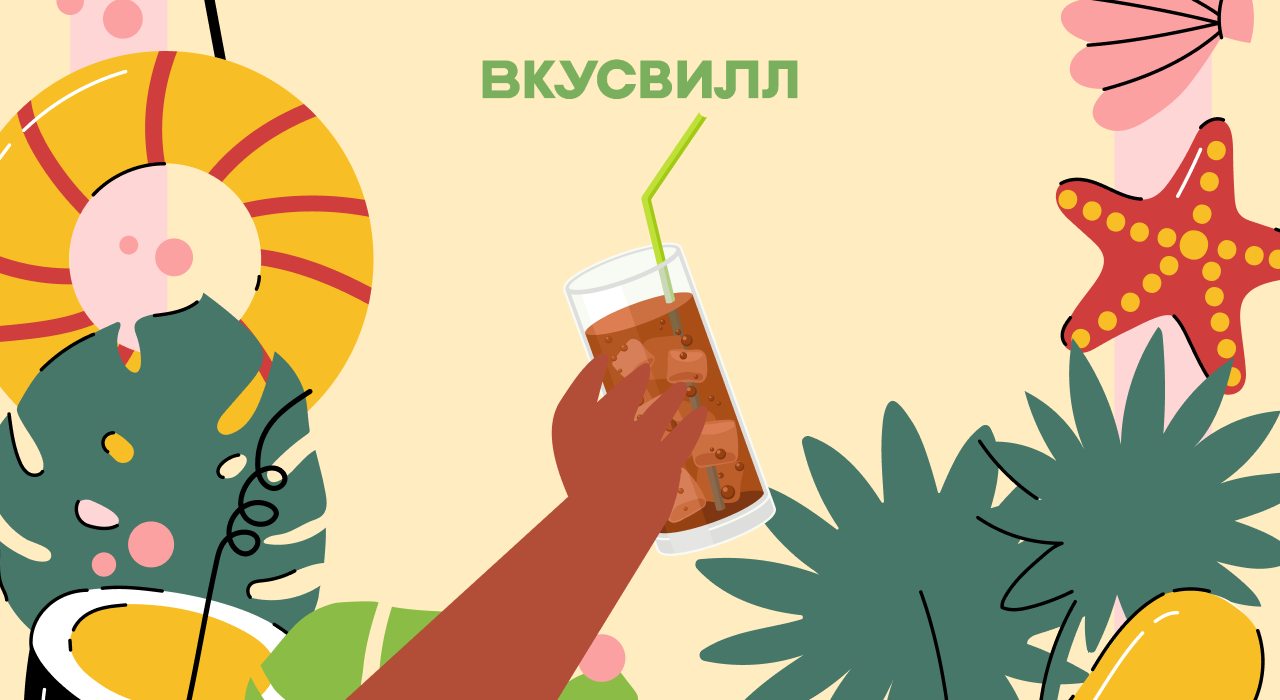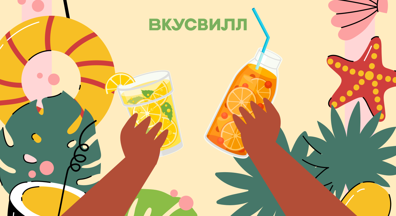 Хотите устроить себе или близким прохладный день без лишней суеты? Соберите набор летних напитков — от морсов и лимонадов до холодного чая и кофе — во ВкусВилле. Всё нужное доставят за 1–2 часа бесплатно, независимо от суммы заказа.