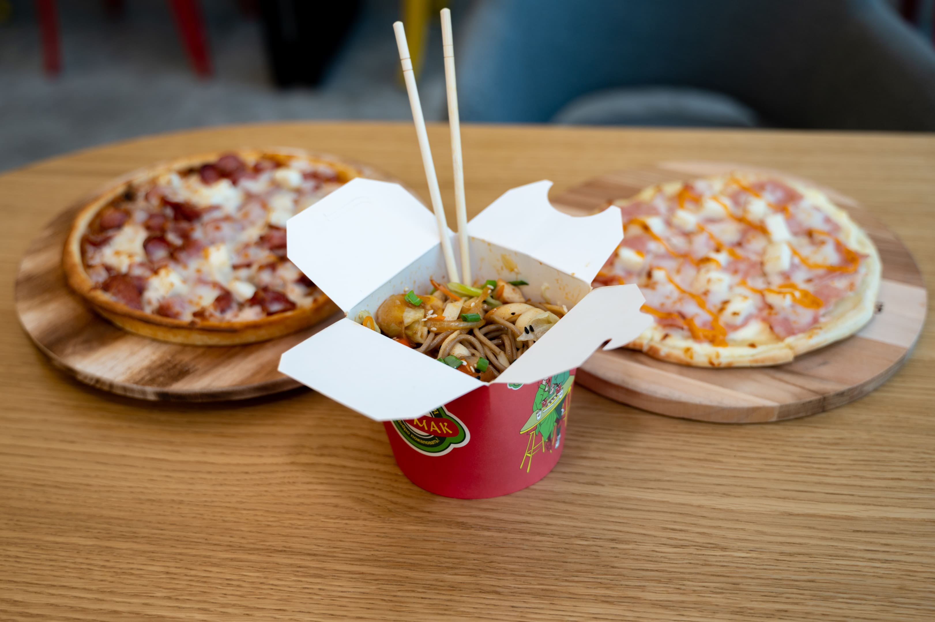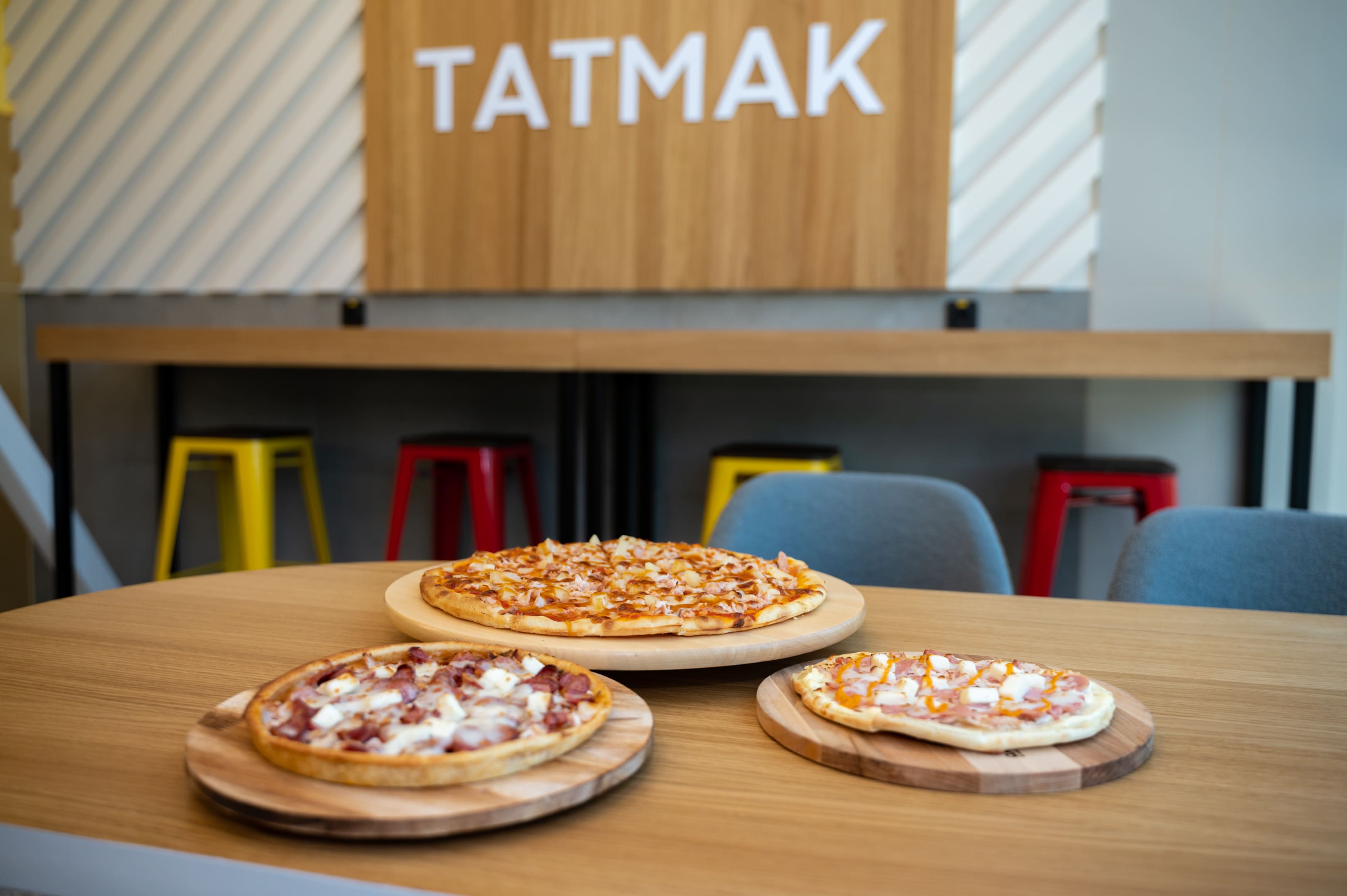 ТАТМАК работает ежедневно с 8:00 до 22:00 без перерывов и выходных. Жители города могут заказать доставку в офис или на дом, а также оформить предварительный заказ. В меню представлены большие пиццы и пиццы на корже, ароматные супы том ям и мисо, вок-лапша, панини, картофель фри, сырные шарики, мини-корндоги, наггетсы и зерновой кофе.