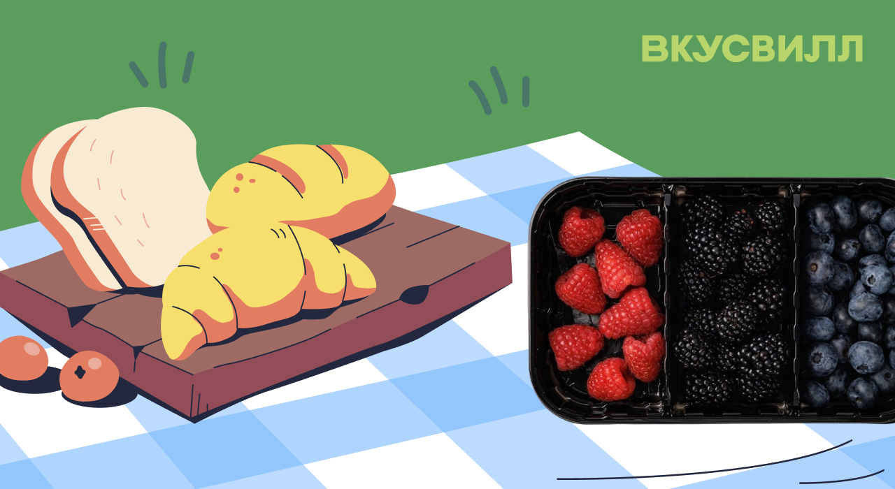 Соберите готовый набор во ВкусВилл — всё уже нарезано, упаковано и готово к выезду. Закажите онлайн, и всё доставят за 1–2 часа бесплатно, независимо от суммы. Плед, солнце и хорошая компания — прилагаются по умолчанию.
