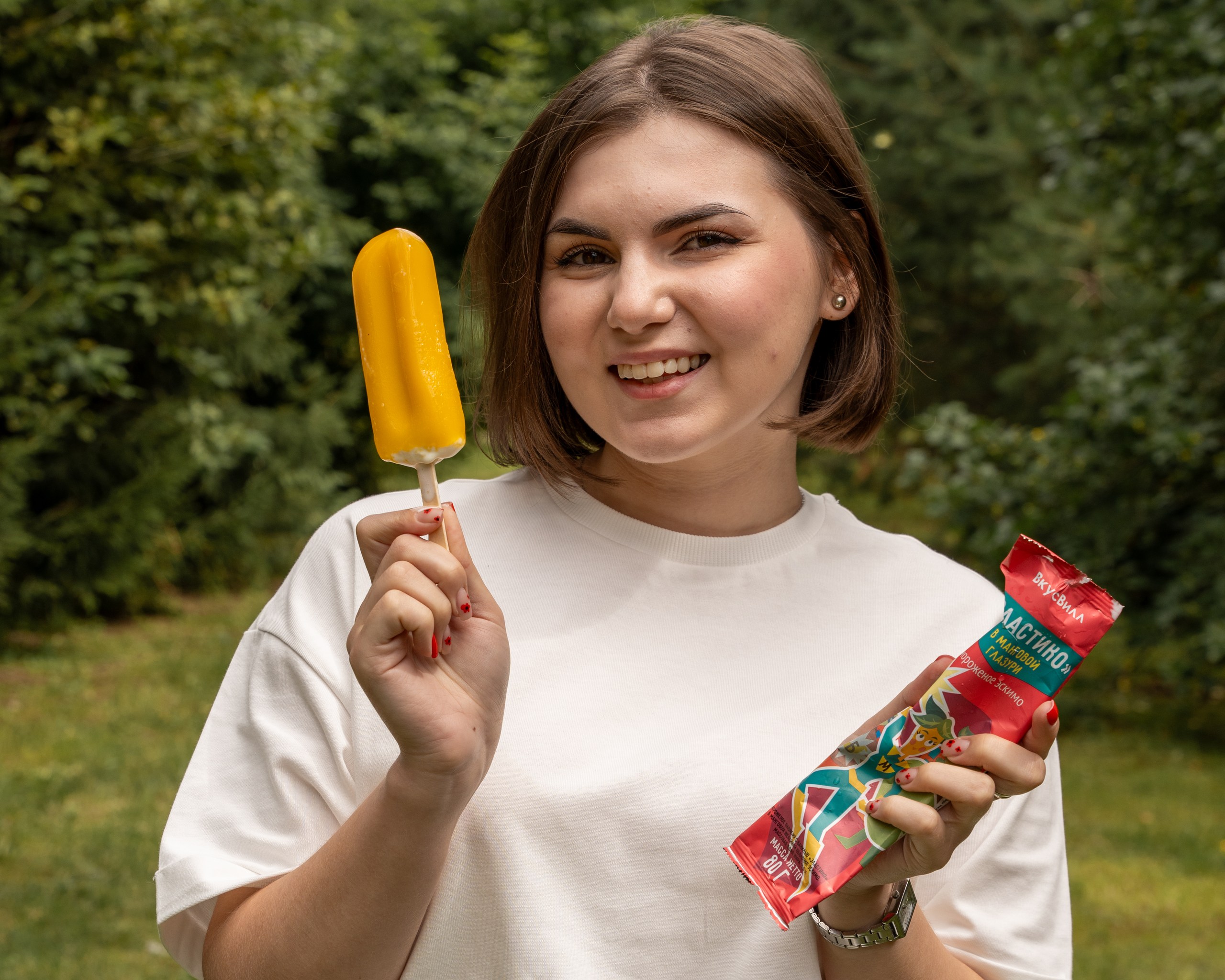 "Этот веганский десерт стал для меня настоящим открытием. Нежность пломбира и легкость сорбета создают уникальный дуэт. Вкус напоминает 'Пина Коладу' — освежающий и сладковато-фруктовый. Идеально для долгих летних прогулок, он заряжает солнечным настроением и мгновенно переносит в тропики".