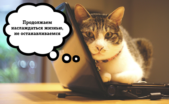 Не делить все на большие или маленькие радости, в этом секрет кошачьего спокойствия. Вкусная еда, хорошая книга, новый сериал, чудаковатый трек залетающего в тренды музыканта, все это приятные моменты только для вас и их лучше смаковать. Замедлитесь на минуту, посмотрите вокруг, весна же. Если что-то тревожит и надо переключиться, 3 минуты смешных видео с кошками сработают как лучший антидепрессант. Только смотрите незаметно от начальства, у настоящих котиков должны оставаться некоторые секреты.